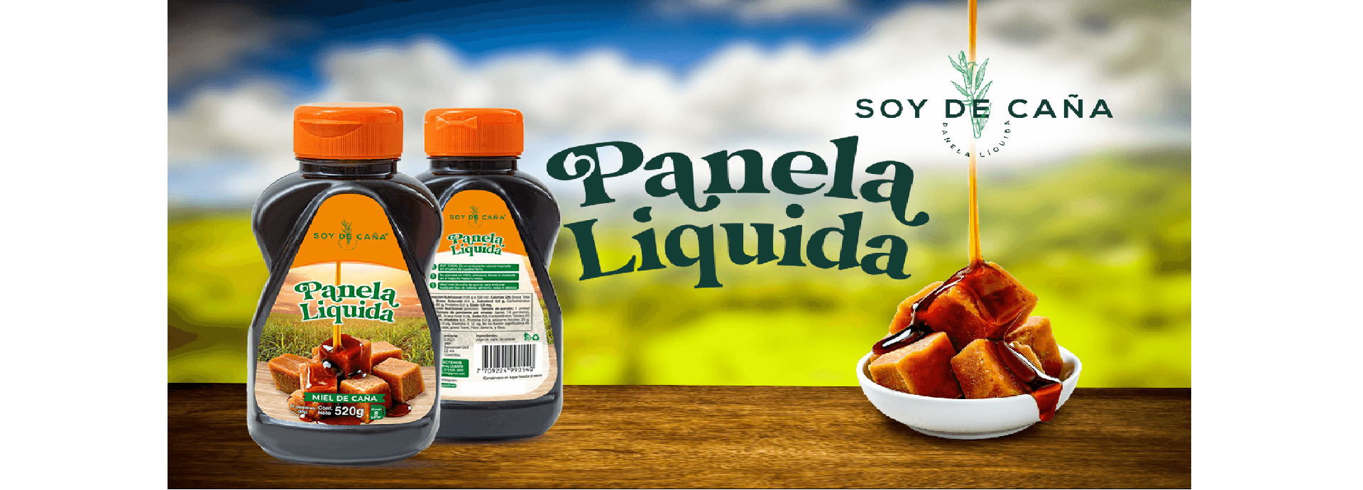 Panela líquida SOY DE CAÑA 520g unidad, CAJA DE 10 y 20 UNIDADES